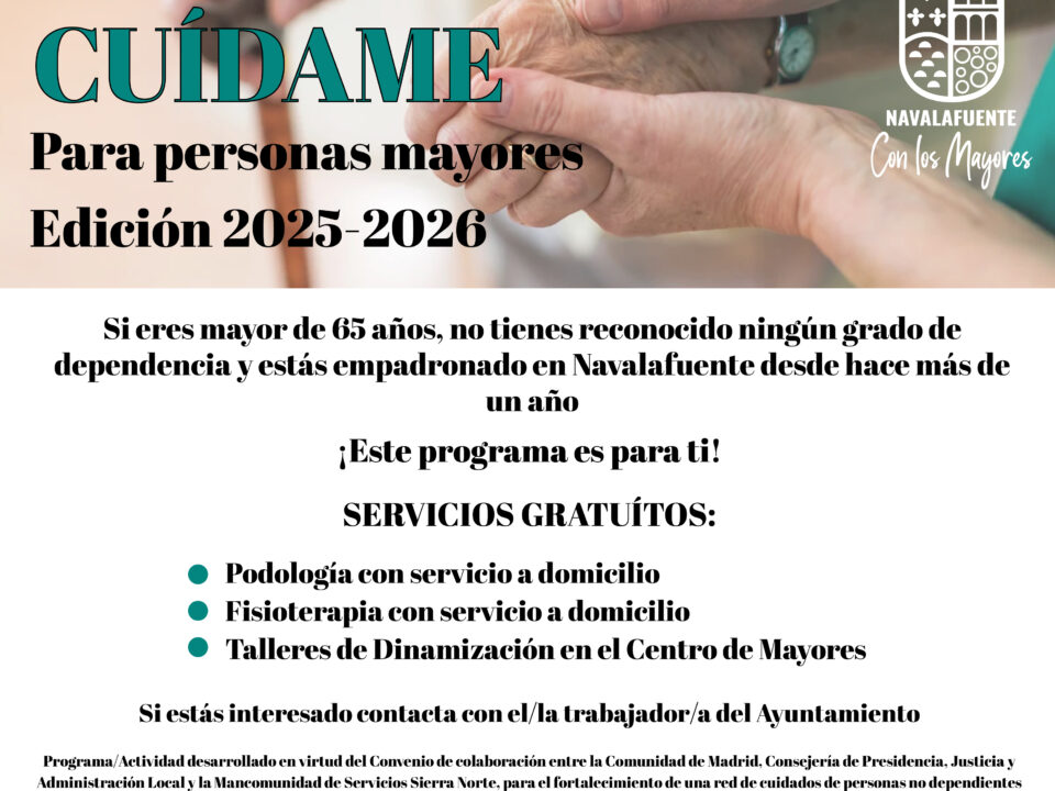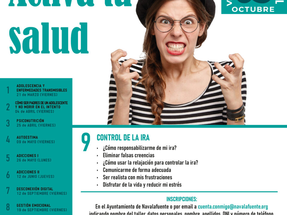 PROGRAMA CUÍDAME 2025-2026 Si tienes 65 años o más, llevas más de un año empadronado en Navalafuente y no tienes reconocido ningún grado de dependencia, puedes […]Taller Activa tu Salud “CONTROL DE LA IRA”