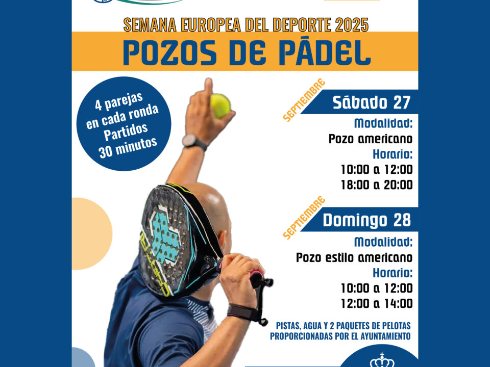 Del 23 al 30 de septiembre celebramos juntos la Semana Europea del Deporte 2025 con un montón de actividades para todas las edades y gustos: pilates, […]POZOS DE PÁDEL – SEMANA EUROPEA DEL DEPORTE 2025