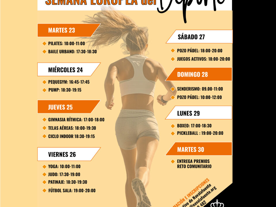 ¡Este es el RETO de la Semana Europea del Deporte en Navalafuente! Os lo adelantábamos y… ¡ya está aquí! 👉 El reto es muy sencillo: caminar 10.000 […]SEMANA EUROPEA DEL DEPORTE EN NAVALAFUENTE