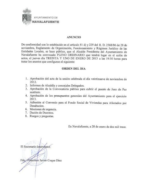 Salón de actos municipal. 19:30 h. El Alcalde Presidente del Ayuntamiento de Navalafuente ha convocado Pleno Ordinario, que se celebrará el próximo jueves 31 de […]