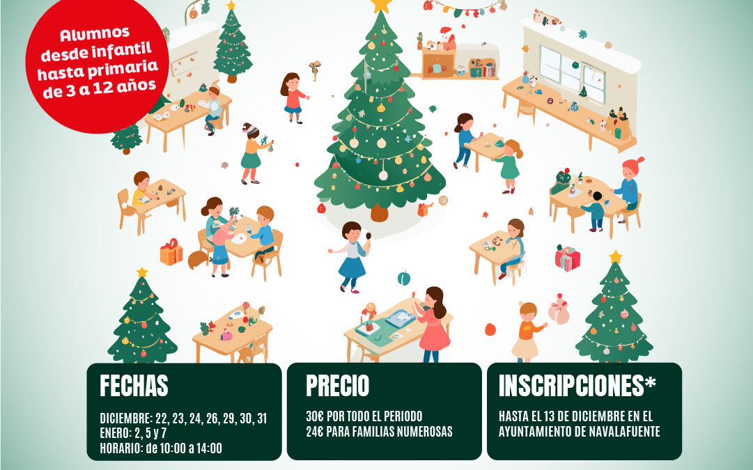 El Ayuntamiento de Navalafuente organiza el Campamento de Navidad 2025, para niños y niñas de 3 a 12 años (niveles de Infantil y Primaria).