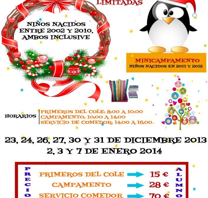 La Concejalía de Educación del Ayuntamiento ha organizado un campamento urbano para estas Navidades cuyas características aparecen detalladas en el cartel adjunto: