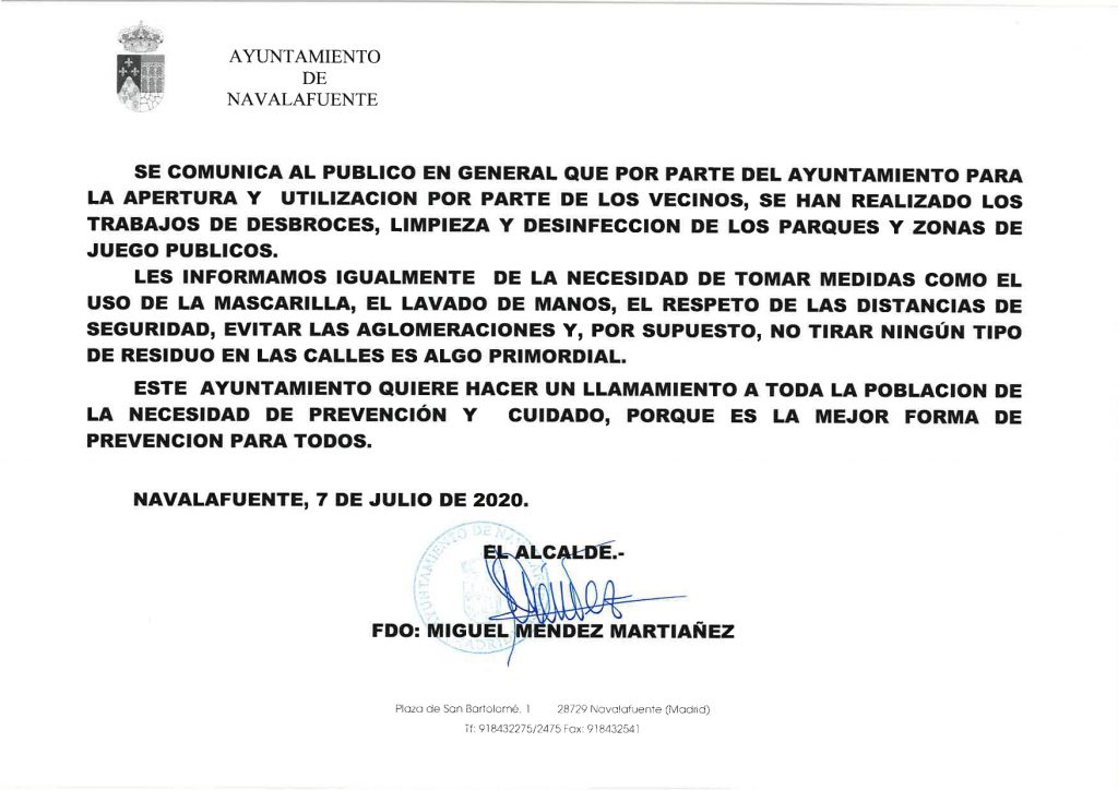 Se pone en conocimiento de los vecinos y vecinas de Navalafuente que este Ayuntamiento tiene previsto dotar al casco urbano de nuevas zonas de aparcamiento. Por […]