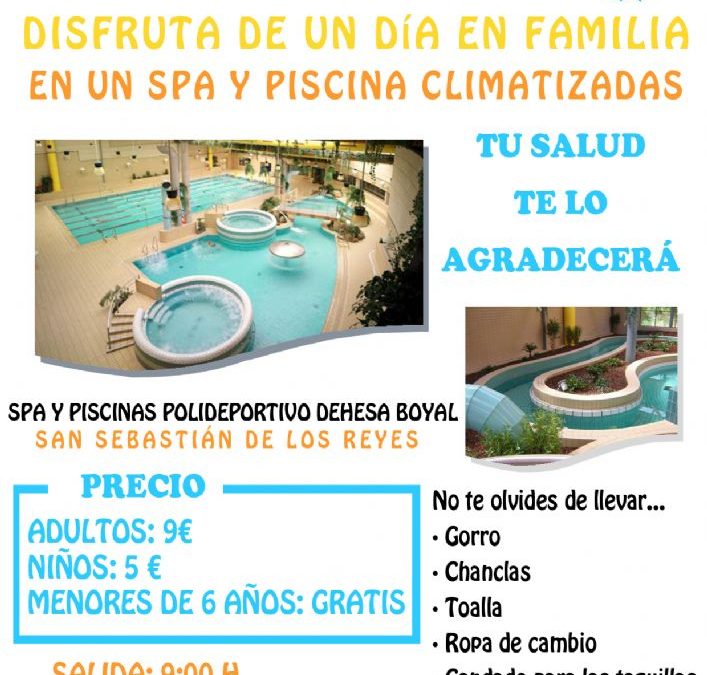 Para celebrar el día mundial de la salud, la Concejalía de Sanidad de este Ayuntamiento ha organizado una salida al polideportivo Dehesa Boyal de San Sebastián de los Reyes, para disfrutar de su spa y piscinas climatizadas.