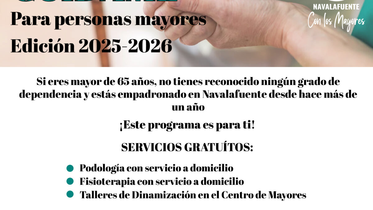 Si tienes 65 años o más, llevas más de un año empadronado en Navalafuente y no tienes reconocido ningún grado de dependencia, puedes beneficiarte de estos servicios gratuitos: